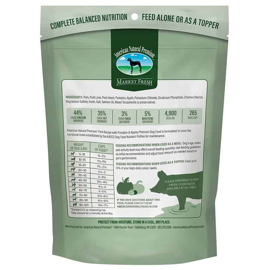 Crafted with just pork, pumpkin, and apple, this recipe is free from grains, fillers, and artificial additives, making it an ideal choice for dogs with food sensitivities or owners seeking clean, simple nutrition.