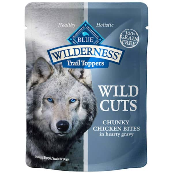 BLUE Wilderness Wild Cuts Trail Toppers are made to satisfy the spirit of the wolf that lives on in your dog. Add delicious bites of real chicken steeped in irresistible gravy to your favorite BLUE dry foods or serve as a savory snack.
