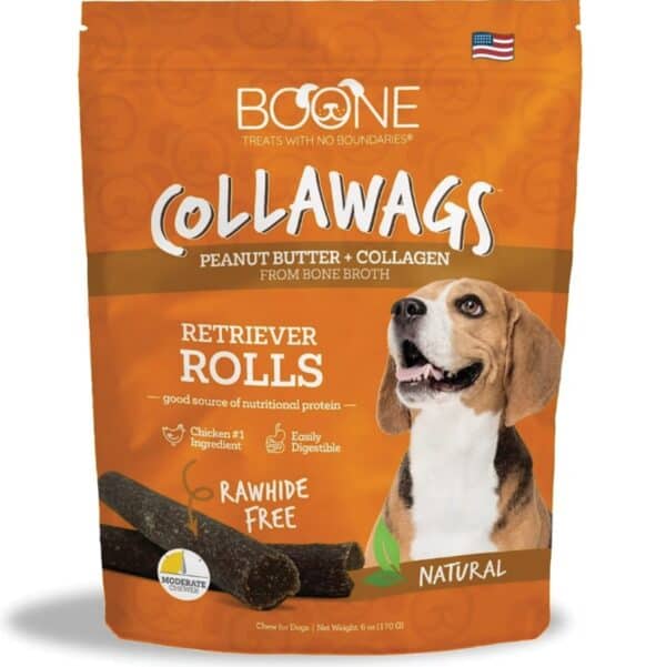 Made with natural ingredients and fortified with beef collagen from bone broth, these rolls provide a great source of protein to support your pup’s overall health. With 4,197 mg of collagen per chew, these treats help maintain healthy joints, ligaments, skin, coat, immune response, and paws. They are also gluten-free and do not contain wheat, corn, soy, or artificial ingredients. Plus, they are rawhide-free, making them a safe and tasty option for your furbaby. Give your pup the energy they need to stay happy, healthy, and active with Boone Collawags Retriever Rolls.