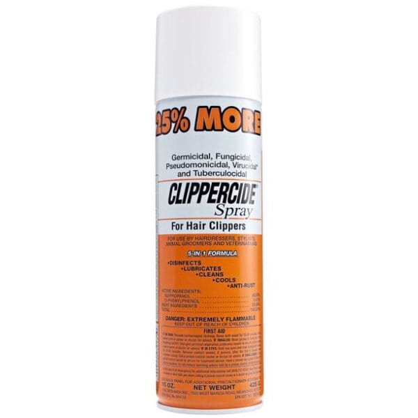 For metal hair clippers and implements, this exclusive five in one formula disinfects, lubricates, cleans, cools and prevents rust in 10 minutes or less. Effective bactericidal, fungicidal, virucidal and tuberculodial action. Reduces friction and permits clippers to run smoother. Cleans and cools the blades at the same time.