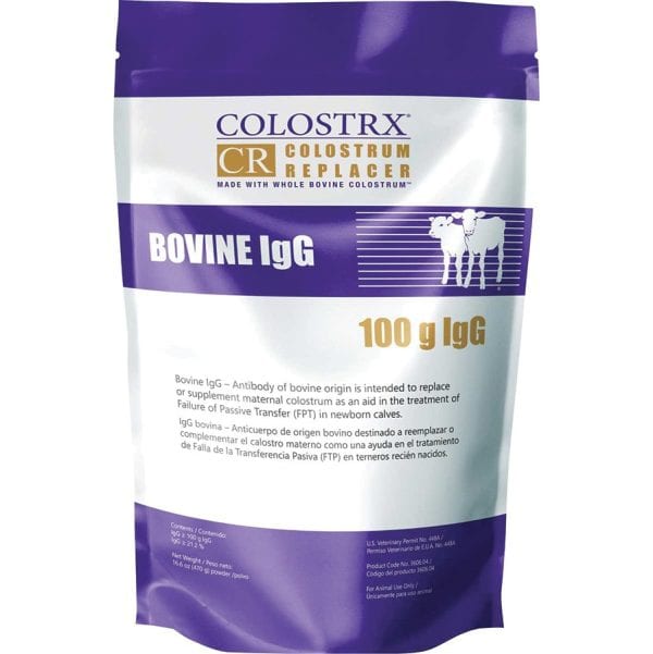 Colostrx CR Bovine IgG Colostrum Replacer for calves is now made with an even higher quality, more concentrated colostrum powder that will mix with ease and offer a more concentrated feeding to ensure the animal receives valuable immunity and antibodies needed to survive. Aids in the treatment of Failure of Passive Transfer of immunity in newborn calves. Bovine IgG Colostrum Replacer delivers 100g whole bovine IgG colostrum and can be fed as a replacement for maternal colostrum. Naturally high in colostral fat, a sustainable energy source for newborn calves to get up and suckle.