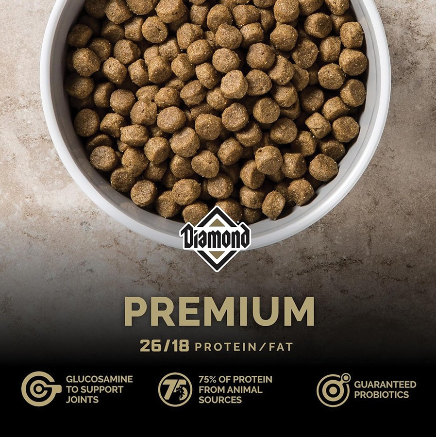 Chicken by-product meal, whole grain ground corn, wheat flour, chicken fat (preserved with mixed tocopherols), dried beet pulp, egg product, flaxseed, natural chicken flavor, fish meal, salmon oil (a source of DHA), potassium chloride, salt, choline chloride, dried Lactobacillus plantarum fermentation product, dried Bacillus subtilis fermentation product, dried Lactobacillus acidophilus fermentation product, dried Enterococcus faecium fermentation product, dried Bifidobacterium animalis fermentation product, vitamin E supplement, iron proteinate, zinc proteinate, copper proteinate, ferrous sulfate, zinc sulfate, copper sulfate, potassium iodide, thiamine mononitrate, manganese proteinate, manganous oxide, ascorbic acid, vitamin A supplement, biotin, niacin, calcium pantothenate, manganese sulfate, sodium selenite, pyridoxine hydrochloride, vitamin B12 supplement, riboflavin, vitamin D supplement, folic acid.