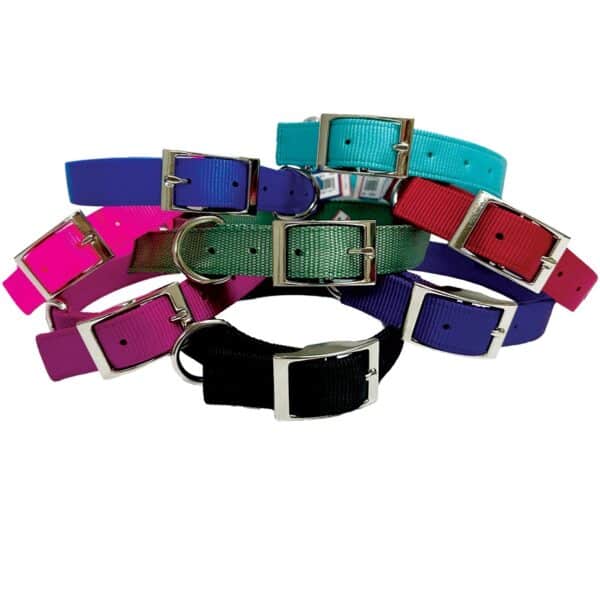 Leather Brothers Double-Ply Double Layered Nylon Collar is an excellent durable collar for dogs. The collar is sewn with premium nylon thread for extra durability. It also features high-quality hardware for added strength and security. Available in multiple widths, lengths and colors.