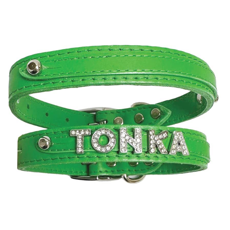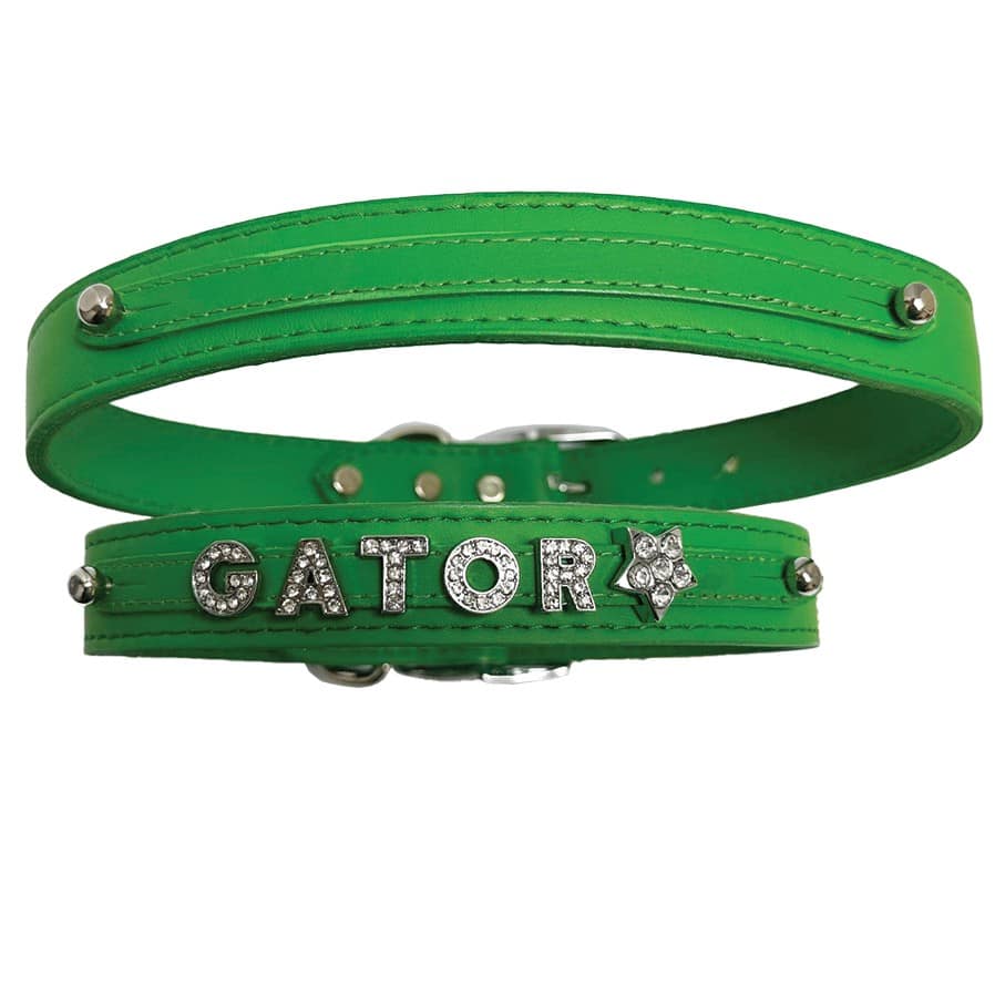 The Leather Brothers Signature Leather Emerald Green Slider Collar will make your pet standout from the crowd. Made of real premium leather, these quality made collars are the perfect choice to personalize your pets everyday appearance. Customize the collar with extra flair by adding Jeweled Slider Letter or Symbol Charms (sold separately). Find them here or search for item 6550.