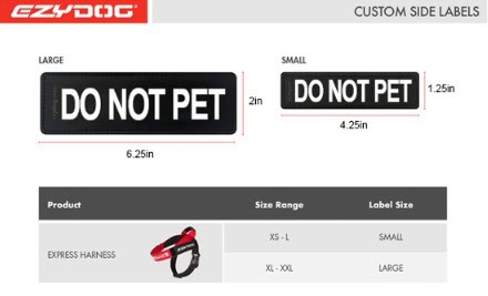 - Small badges fit Express Harness XS – L and Large badges fit sizes XL – XXL