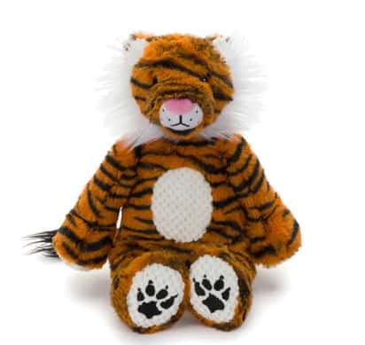 - This tiger toy is made with soft and durable plush fabric for a satisfying texture.