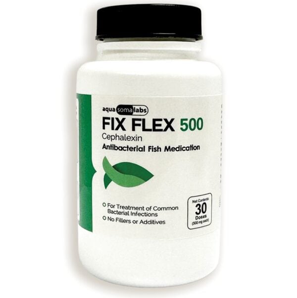 Fix Flex Cephalexin Capsules for Fish Antibiotics are the most effective, broad-spectrum solution to cure bacterial infections in ornamental and aquarium fish. These capsules are prepared using Cephalexin Monohydrate, a time-tested antibiotic, for treating common infections like fin rot, skin ulcers, and gill diseases. Easy to use and quickly dissolving, Fix Flex provides a non-toxic and efficient method to restore your fish’s health and maintain a healthy aquatic environment.
