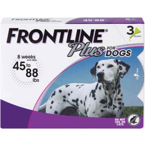 Help protect your pup from pests with FRONTLINE Plus Flea & Tick Treatment for Large Dogs. This flea and tick control treatment is specially formulated to kill adult fleas, flea eggs, flea larvae, chewing lice and ticks, including ticks that may transmit Lyme disease. It’s made with two active ingredients—fipronil and (S)-methoprene—to help disrupt the flea life cycle and prevent future infestations. Each fast-acting topical application offers 30 days of full-body, waterproof protection by depositing into your dog’s sebaceous glands.