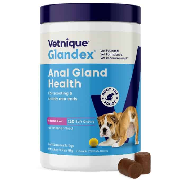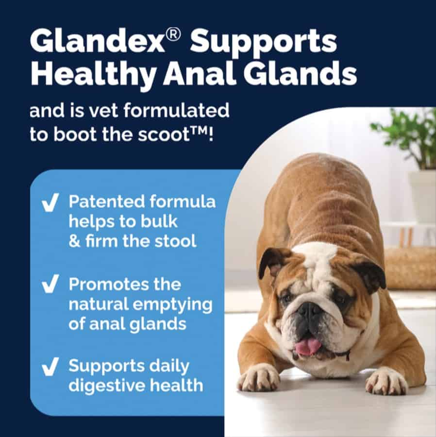 Glandex® was created by veterinarians specifically to help support anal gland function in dogs and cats. Glandex’s patented formula contains a unique fiber blend, omega fatty acids, probiotics, and digestive enzymes to support digestion, seasonal allergies, and enhance the immune response.