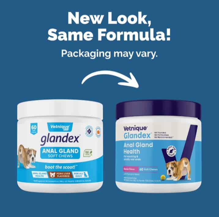 Glandex works in multiple ways from the inside out to keep the anal glands healthy. Glandex’s patented formula uses a unique fiber blend to support bulky and firm stools to assist the natural emptying of the anal glands every time your pet defecates. Other key ingredients including omega fatty acids also help support a healthy inflammatory response and maintain normal histamine levels in pets with seasonal allergies. Glandex also contains probiotics and digestive enzymes to support a healthy digestive tract, which in turn supports healthy anal gland function.