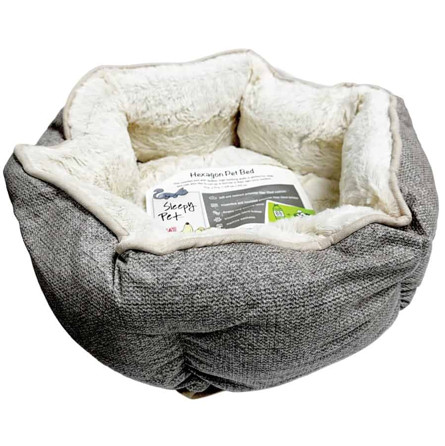 Your small dog or cat will love this cuddly, plush bed. They can curl up against any of the bolstered sides for a restful sleep and once they’re done, you can throw the whole thing in the wash for easy care. Bed size is 19″