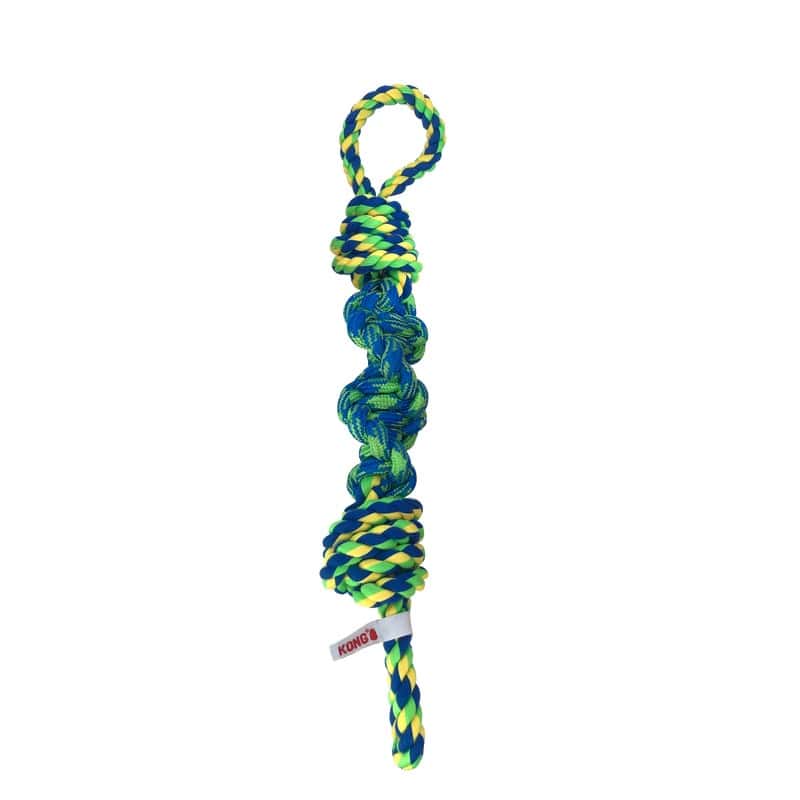 KONG Rope Bunji’s internal elastic bungee cord adds dynamic spring for extra-fun tugging and tossing with this durable, knotted, twisted rope toy. Two easy-grab loops deliver interactive ease while the bungee softens the tugging motion. Ideal for indoor and outdoor action.