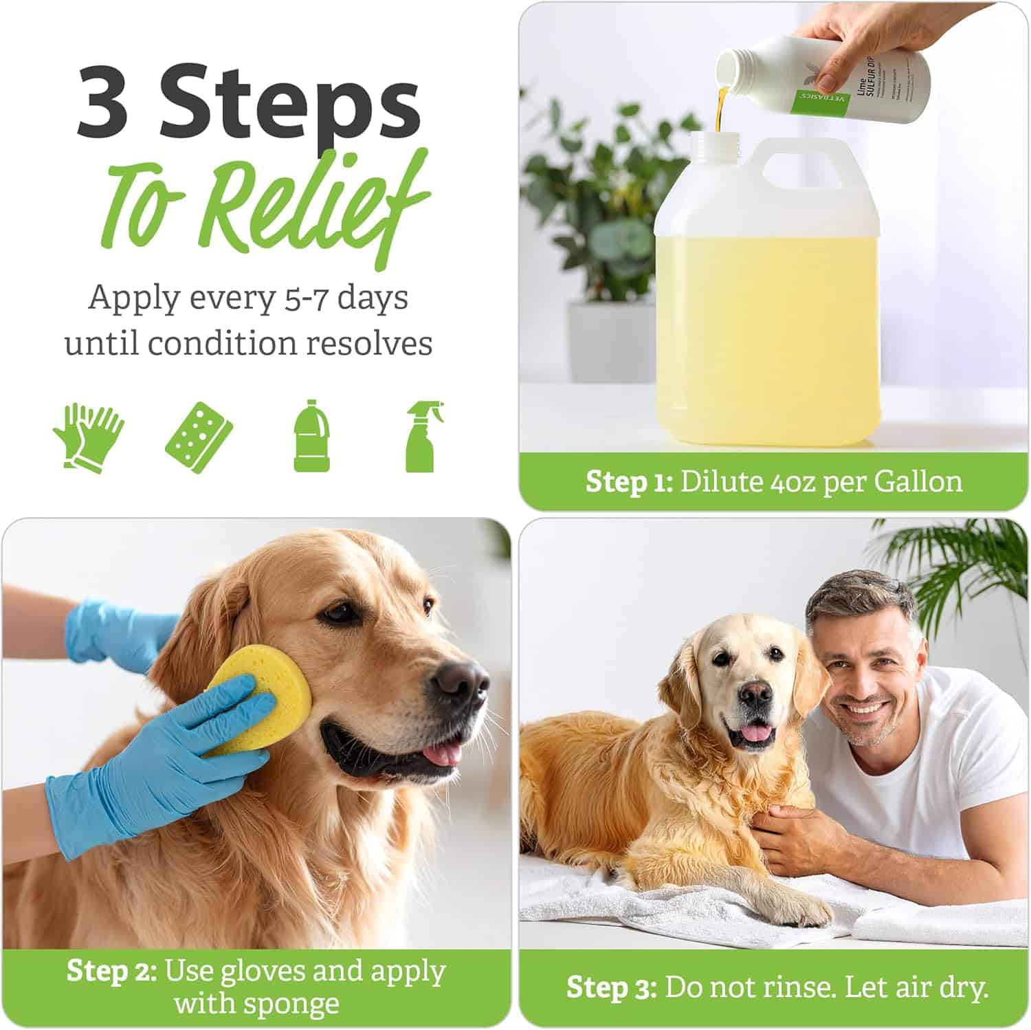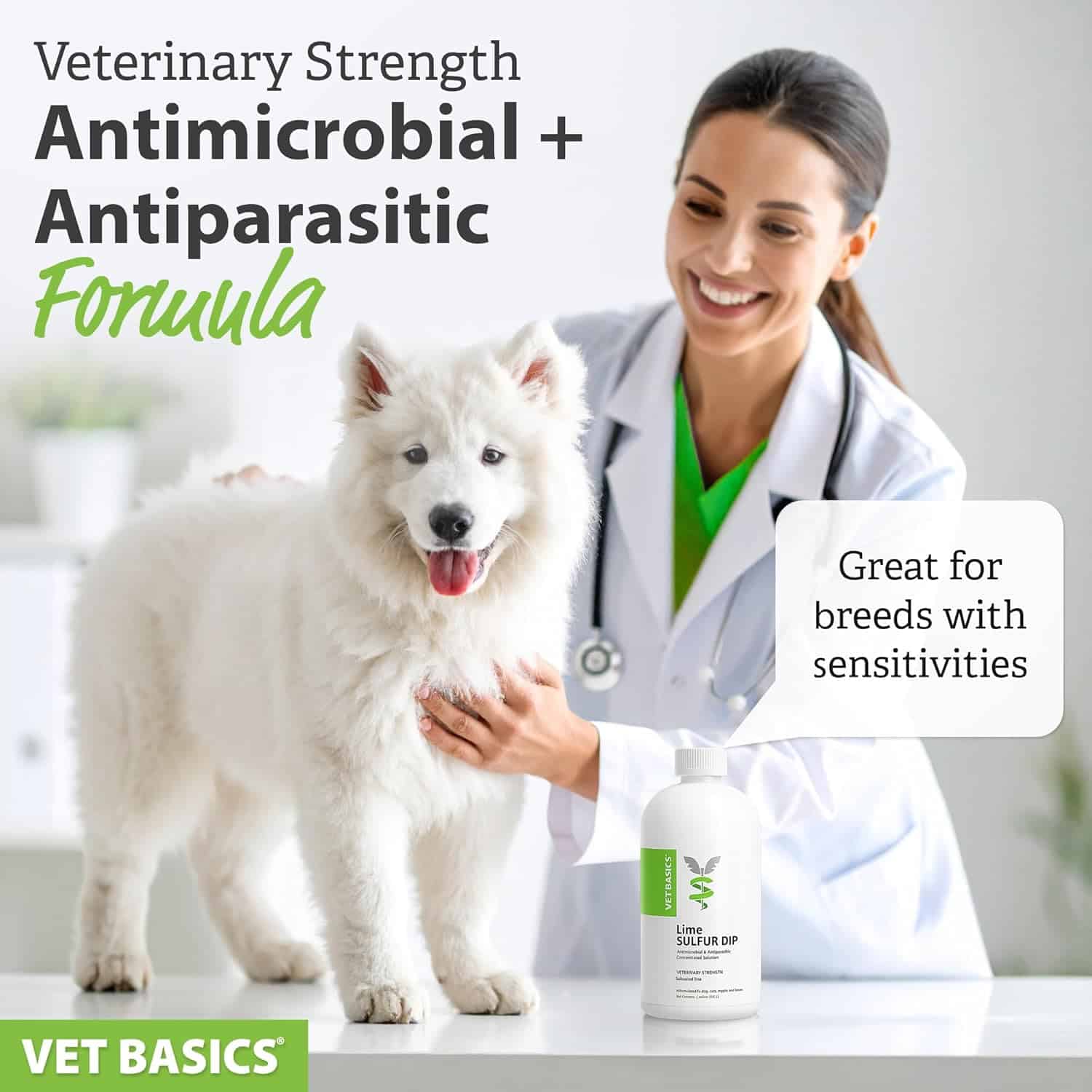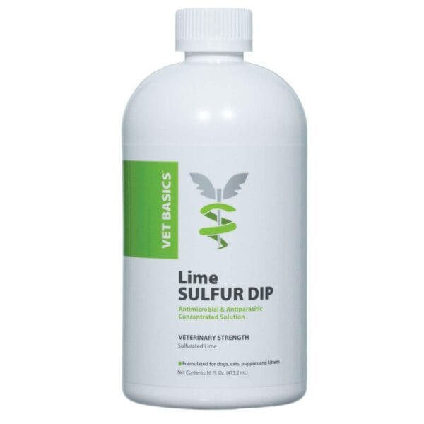 Vet Basics Lime Sulfur Dip is suitable for use on dogs, cats, puppies, kittens, and horses. Its formula is specifically formulated to treat non-specific dermatoses, providing relief from skin conditions. While the dip has a strong sulfur smell, it is straightforward to apply. Simply sponge the diluted solution onto the affected areas of your pet’s skin.