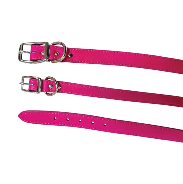 Classic yet luxurious, the Luxe Leather Flamingo Pink Dog Collars are made of genuine supple leather. Features sturdy nickel plated buckles and an ultra soft leather feel. Your dog will appreciate the level of comfort the premium real leather provides. Leather Brothers takes pride in their durable quality and premium leather of these high end collars.