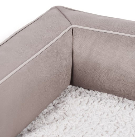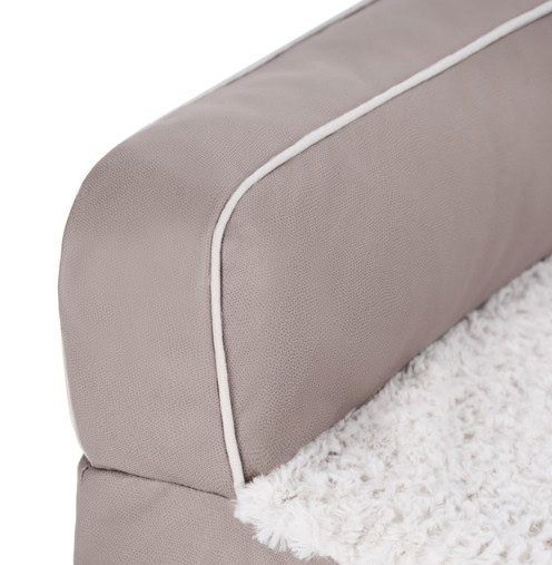 Upgrade your pet’s lounging experience with the Textured Plush & Coated Poly Modern Sofa Pet Bed. Designed for relaxation and style, this luxurious pet bed combines a sleek modern design with practical features to enhance both the aesthetic of your home and the comfort of your pet. The bed features soft faux fur reinforced plush with mesh backing and coated polyester fabric for long-lasting durability. Perfect for pets who love to lean into comfort, surrounding bolsters offer spine alignment and neck support.