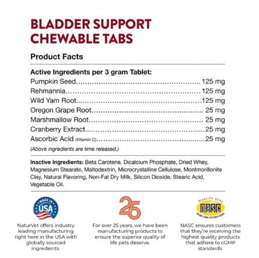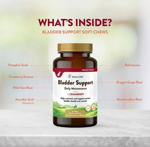 Support your dog’s urinary and immune health with NaturVet Bladder Support Plus Cranberry Chewable Tablets Urinary Supplement for Dogs! Made in the USA, these chewy tablets are packed with a variety of nutritious ingredients such as pumpkin seed, rehmannia, wild yam root, Oregon grape root, marshmallow root, cranberry extract, and vitamin C. These powerhouse ingredients support immunity and normal bladder health and control in dogs 12 weeks and up. Its time-release formula allows for extended relief as well. Simply serve as directed to help keep your pup’s plumbing in tip top shape!