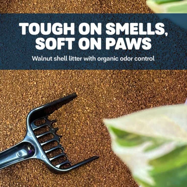 This eco-friendly, clumping cat litter is made from all-natural walnut shells, which have the unique ability to control ammonia odors organically. It’s also specially formulated with a probiotic that’s activated by moisture to neutralize fecal, urine, and ammonia odors on contact. Plus, this litter is virtually dust-free and is low-tracking to help keep your home cleaner and easier to maintain.