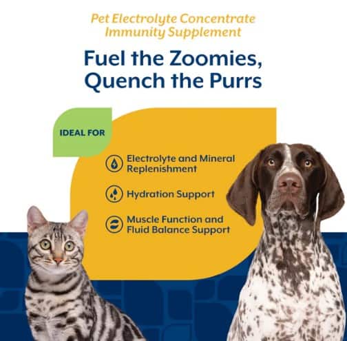 Help keep your pet hydrated and feeling their best with our veterinarian formulated Pet Electrolyte Concentrate. Perfect for dogs and cats recovering from illness, exercise, or hot weather, it helps replenish key electrolytes like Potassium, Sodium, and Chloride for whole-body wellness. Just mix with water for easy, daily hydration support pets can count on.