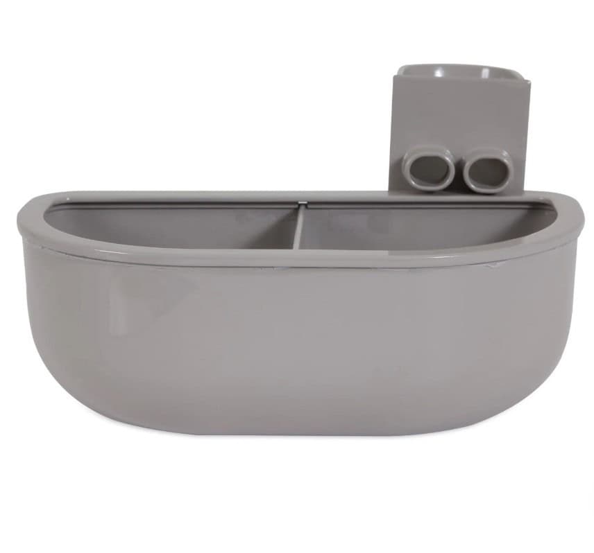 Petmate No-Spill Kennel Cups make it easier to refill your pet’s water during travel than ever before! The No-Spill Kennel Cup features a No-Spill Rim that keeps water in the cup and a funnel that allows you to fill up the cup from the outside, without ever having to open the kennel door. The No-Spill Kennel Cup is BPA and lead-free and works with most wire or plastic kennels. Capacity 13 oz per side.
