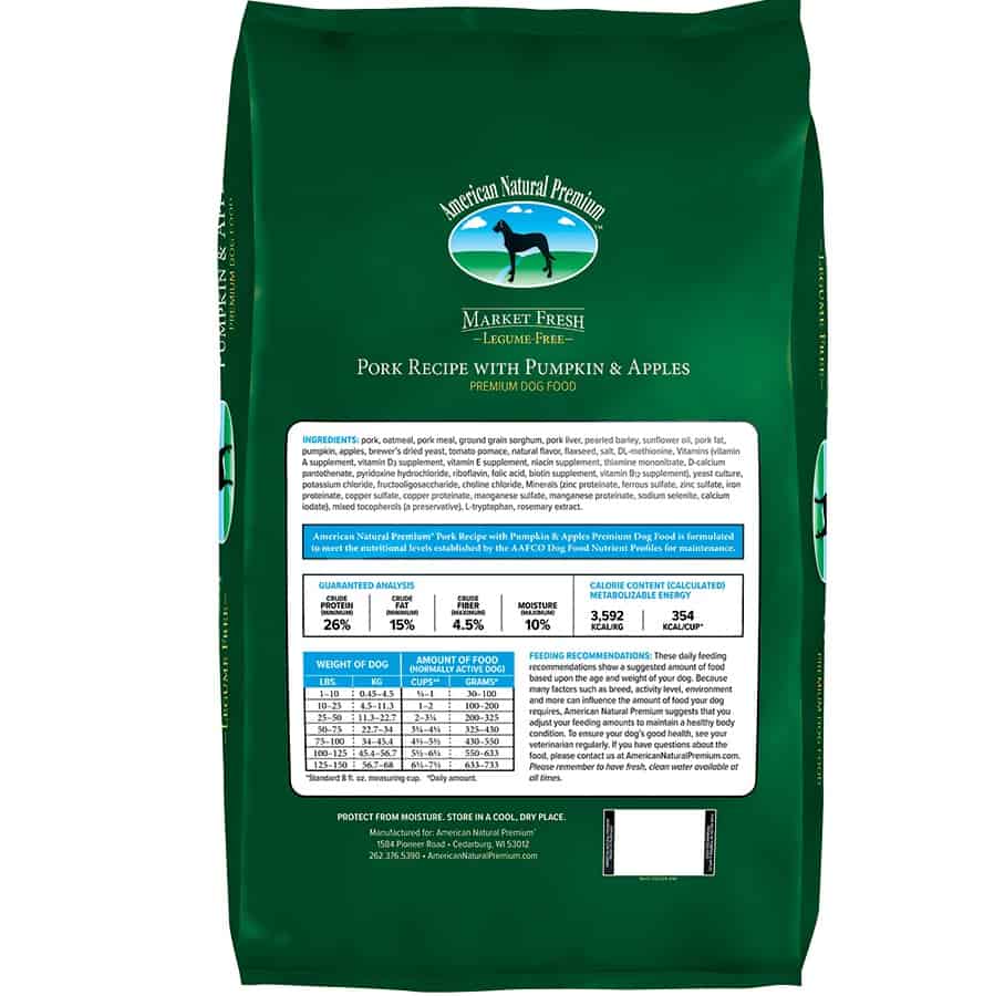 Not all pork dry dog food products are the same – when you choose American Natural Premium’s Pork with Pumpkin and Applesauce, you’re choosing a nutritious and wholesome meal for your canine companion. Our recipes contain natural ingredients sourced from the USA, with nothing artificial.