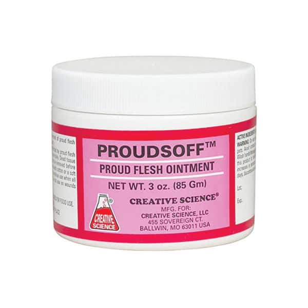 Support proper wound healing with Proudsoff Proud Flesh Ointment (3 oz)—a specialized formula designed to help control and remove proud flesh (excess granulation tissue) in livestock. Ideal for use on horses, cattle, sheep, and goats, this ointment works to manage abnormal tissue growth that can delay or interfere with the natural healing process.