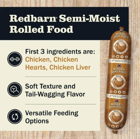Packed with real meat and high-quality, garden-fresh ingredients, the RedBarn Rolled Food is an easy solution to feeding your dog a nutritious, high-protein diet. And, these rolls make feeding a complete and balanced meal easy! Food rolls can be sliced or cubed for a full feed, shredded as a dry food topper, cubed and fed as a treat, used as a pill concealer, or training aid.
