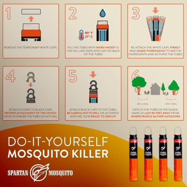 The Spartan Mosquito Eradicator is a uniquely effective, long-lasting, continuous mosquito control system. The Spartan Mosquito Eradicator also doesn’t require batteries or electricity, just water! The mosquito population will suffer dramatically in the first 15 days and will be 95% controlled for up to 30 days.