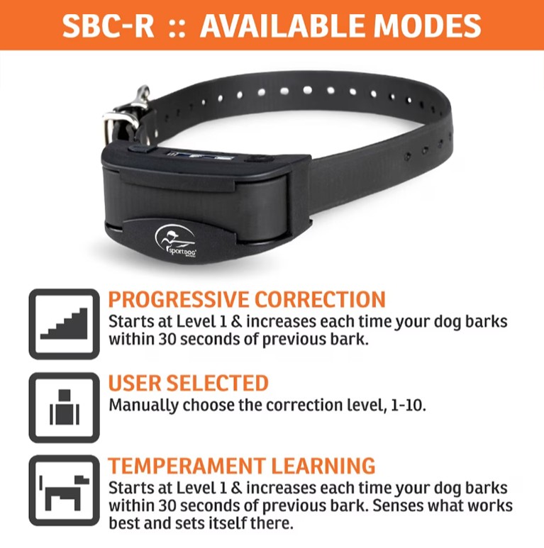 The SportDOG Brand NoBark SBC-R Bark Collar detects barking with Silent Partner patented technology. Your pup’s unique barking style is detected and other barks are filtered out to avoid any false corrections. Explore the three selectable modes of operation (Temperament Learning, Progressive Correction, and User-Selected) and ten levels of shock to choose the type of bark control that works best for your four-legged friend. The SBC-R is waterproof and submersible to ten feet. Plus, it has rechargeable lithium-ion batteries that charge in two hours and last 200 hours per charge. It also features a low battery indicator, so you know when it’s time to charge.