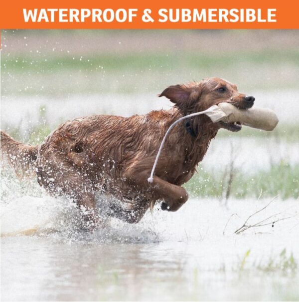 - This collar is waterproof and submersible to 10 feet.