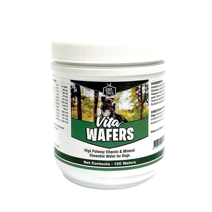 UPCO Coat N’ Tail Vita-Wafers are a high potency, vitamin & mineral chewable wafer for dogs. These super strength, high potency vitamins and minerals come in tasty chewy wafers that will please any dog. Plus, they’re much less expensive than Pet-Tabs® and 2-3 times stronger than many on the market.