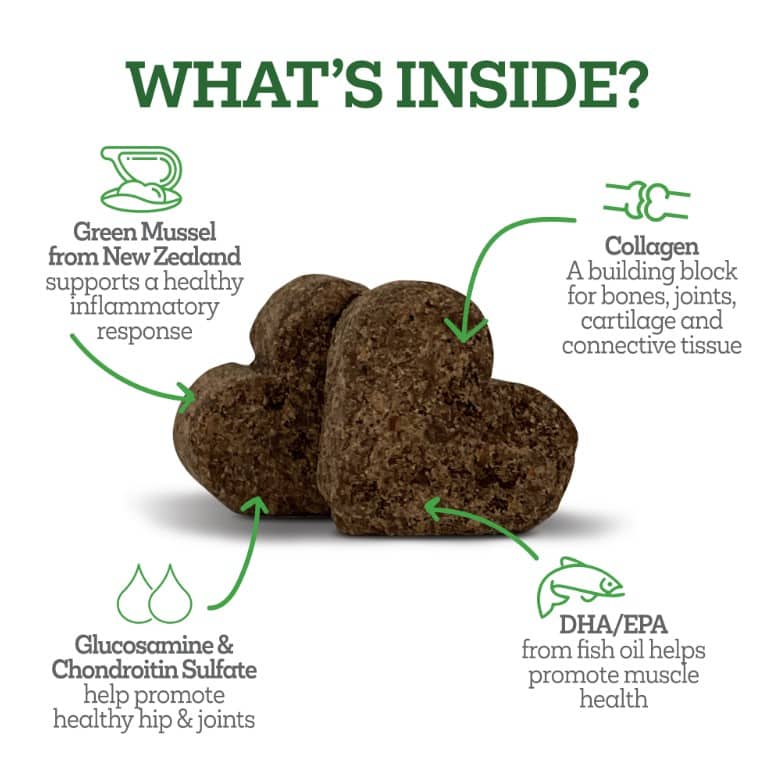Contains green lipped mussel a natural source of glucosamine and chondroitin