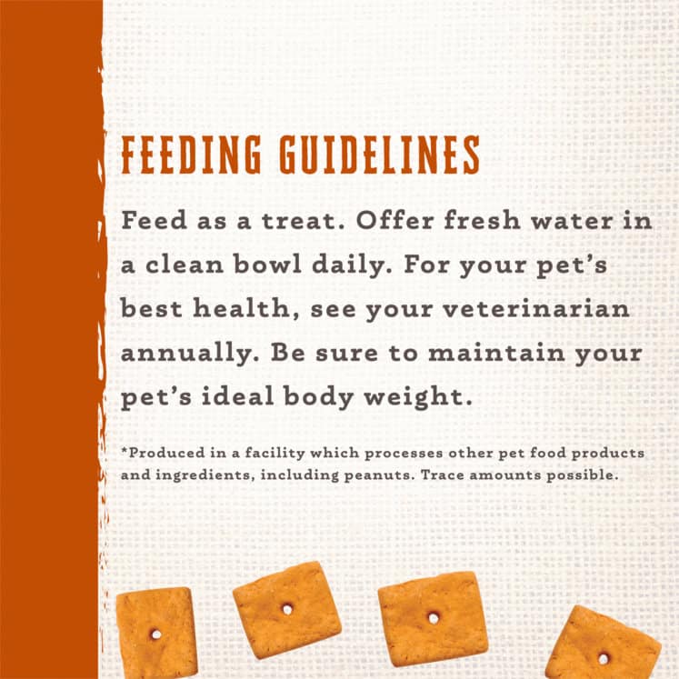 Wholesomes Gourmet Rewards Cheezy Bites have real cheddar cheese baked into every bite. A perfect tasty treat or training reward for any dog. The crunchy texture helps control tartar buildup and helps support fresh breath. Made with high quality chicken protein, ancient grains like oatmeal for heart health, and superfoods like pumpkin and sweet potato. Healthy treats help support a fit lifestyle for your dog.