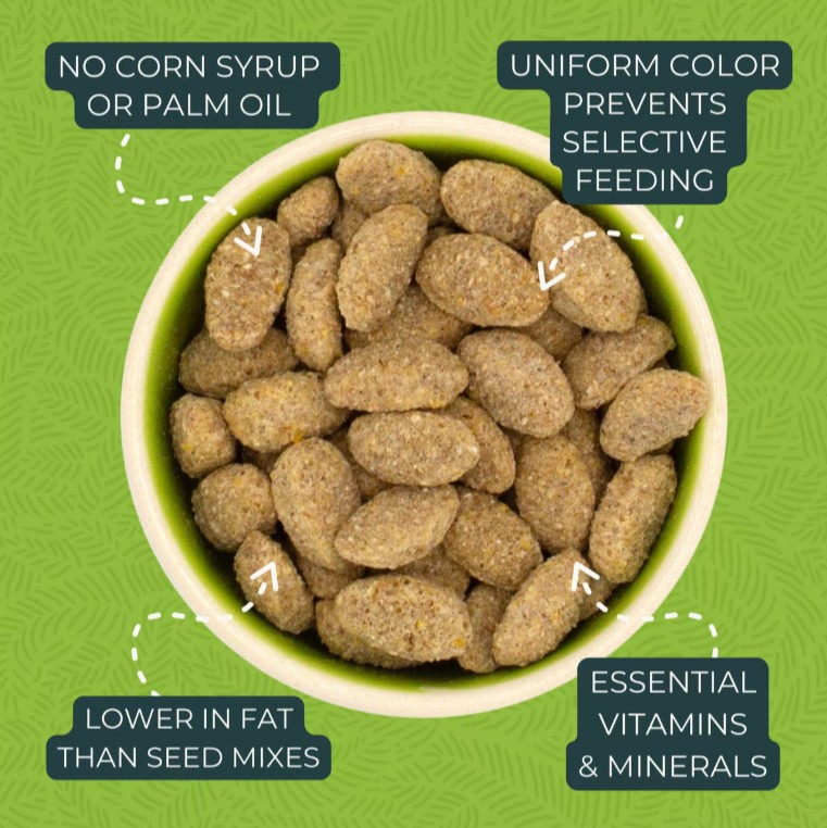 - Pellet-Based Diet – Designed to make up at least 60% of your bird’s daily intake